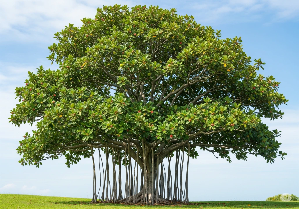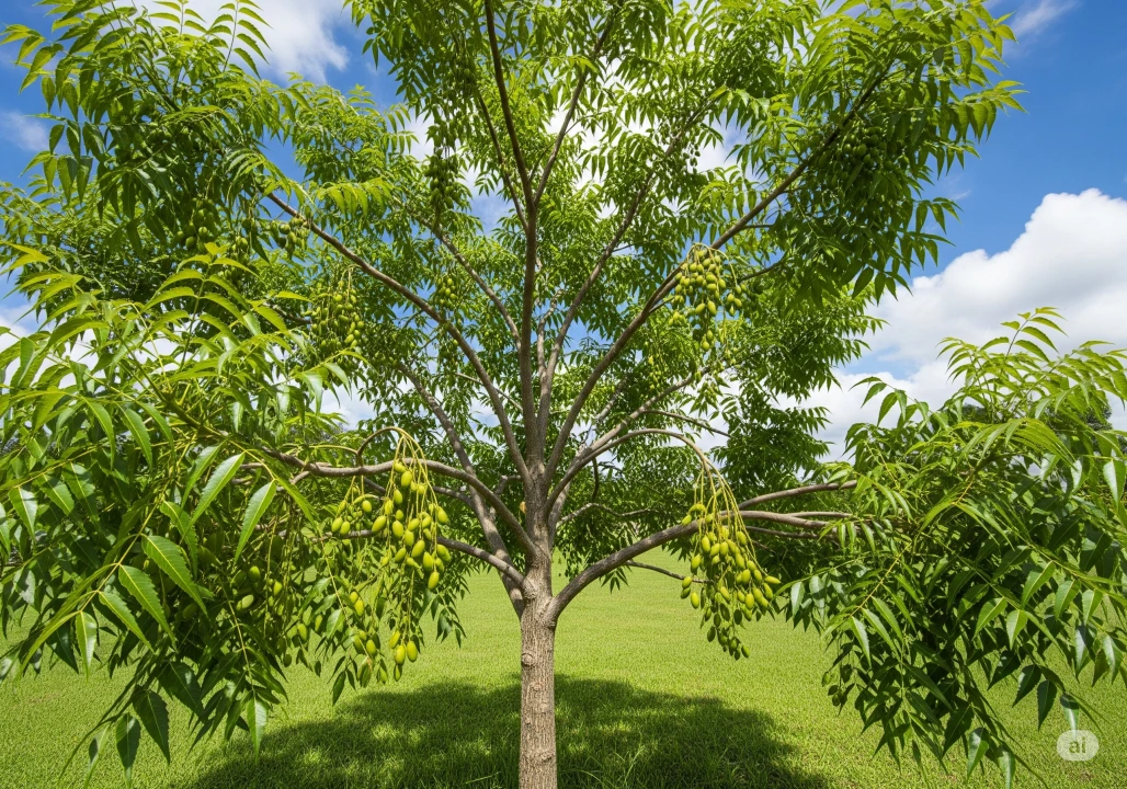 🌳A revered tree known for its medicinal powers, lush green canopy, and cooling shade, standing as a symbol of health and resilience.