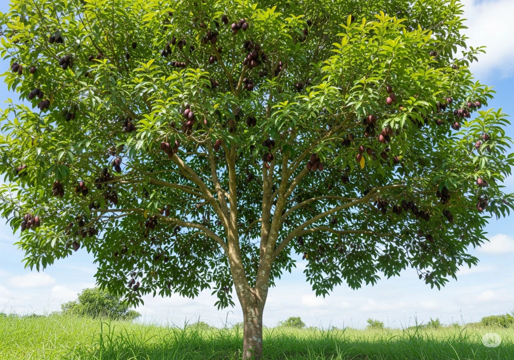 🍇A fruit-bearing tree with deep green leaves and luscious purple-black berries, prized for both flavor and medicinal value.